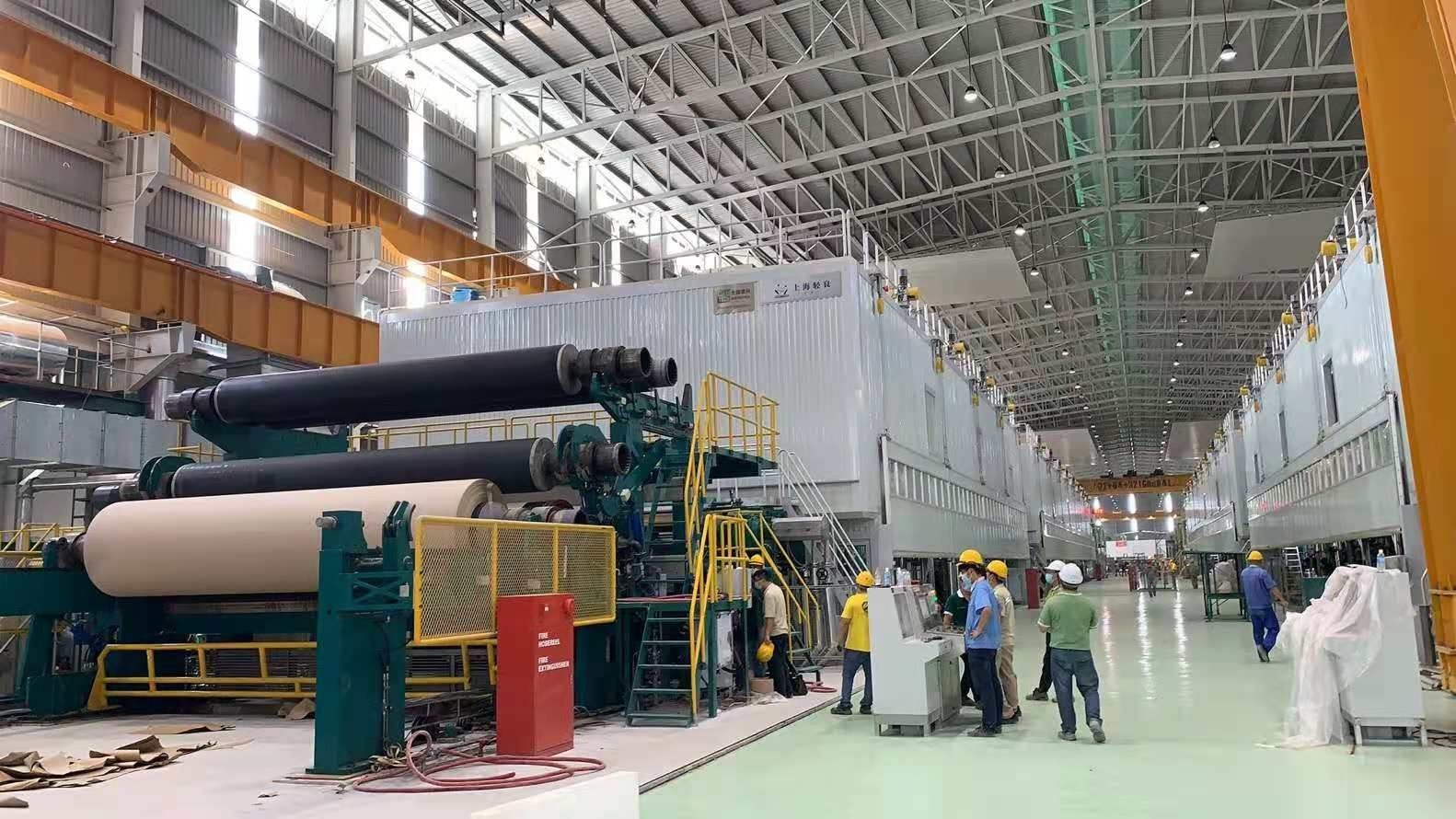 理文造紙馬來西亞項目共有四條5600/900箱紙板生產(chǎn)線,本次開機的PM23為理文造紙在馬來西亞投產(chǎn)的第一條造紙生產(chǎn)線。與PM23同一車間內(nèi)的PM25生產(chǎn)線及另一臺30MW燃氣輪發(fā)電機也進入了最后的安裝調(diào)試階段,預(yù)計今年底投產(chǎn)。同時PM26、PM27生產(chǎn)線以及配套的垃圾爐、生物質(zhì)鍋爐發(fā)電、污水處理項目的施工也在如火如荼進行。