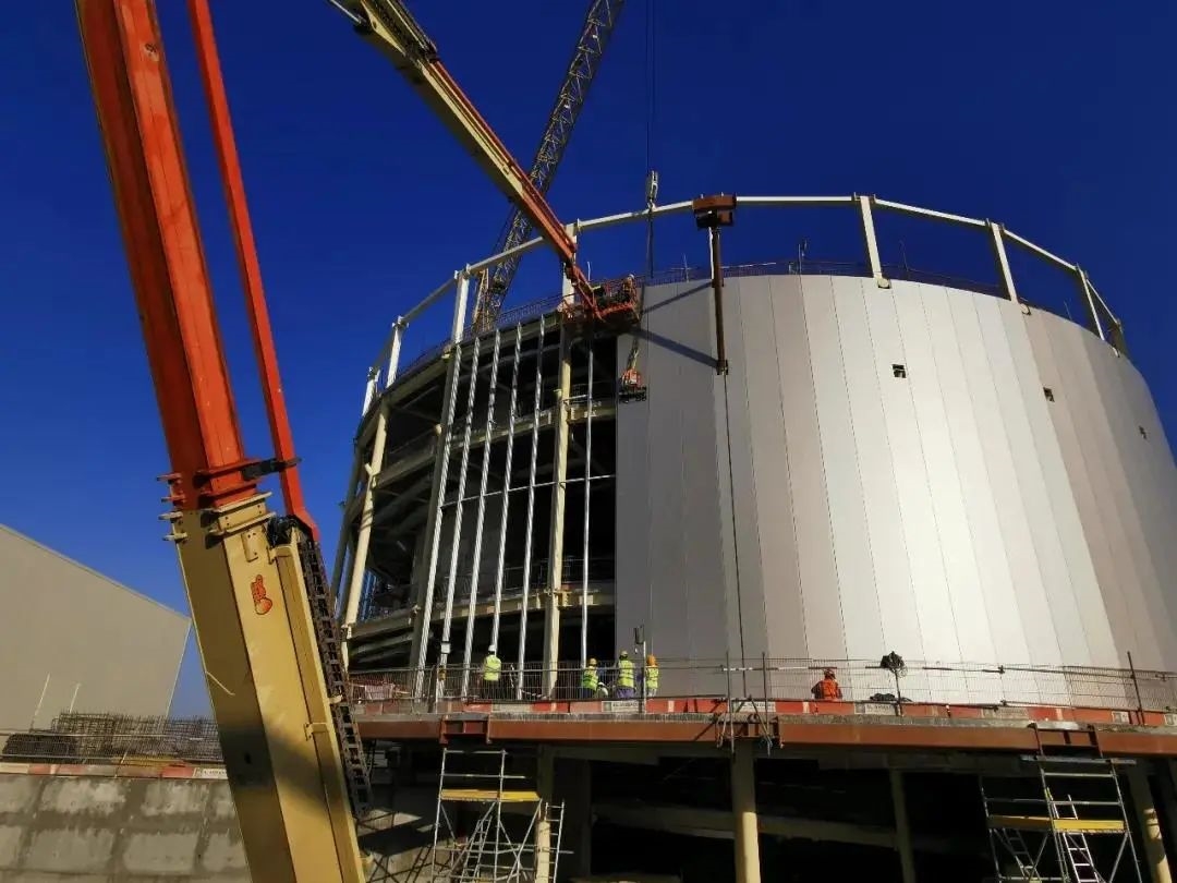 項目團隊在建設中國館期間,嚴格按照中國使領館和海誠防疫要求,克服場地限制、高溫炎熱、疫情等不利因素影響,在保證施工質量的同時,積極配合施工各方趕進度、促成果,最終確保了中國館項目順利交付。鋼結構工程歷時約12個月,于2020年10月14日封頂,2021年2月全部完工并移交。