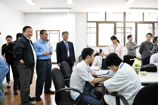 早上8:30起,報名參加獻血的員工們就紛紛來到公司5101房間體檢。9時許,第一批體檢合格的員工踏上了獻血車。公司領(lǐng)導胡小平、翁偉民、工會主席李農(nóng),以及各支部書記,部門領(lǐng)導都守候在獻血車外,陪同慰問著這些慷慨捋袖的志愿者們。