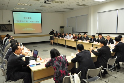 4月26日,中輕集團(tuán)“科研與工程”對(duì)接交流會(huì)在中國(guó)海誠(chéng)股份會(huì)議室舉行。出席會(huì)議的有中輕集團(tuán)董事長(zhǎng)陳鄂生、總經(jīng)理俞海星、科技與信息化部主任孫波、規(guī)劃發(fā)展部主任徐秋紅,中國(guó)制漿造紙研究院、中國(guó)食品發(fā)酵工業(yè)研究院、中國(guó)日用化學(xué)工業(yè)研究院、中國(guó)皮革和制鞋工業(yè)研究院等四家科研院所和中國(guó)海誠(chéng)股份的領(lǐng)導(dǎo)以及相關(guān)人員。會(huì)議由中輕集團(tuán)副總經(jīng)理曹振雷主持。