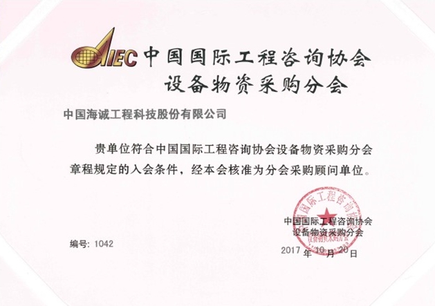 近日,中國國際工程咨詢協(xié)會設備物資采購分會核準中國海誠為“采購顧問單位”,并頒發(fā)了采購顧問證書。