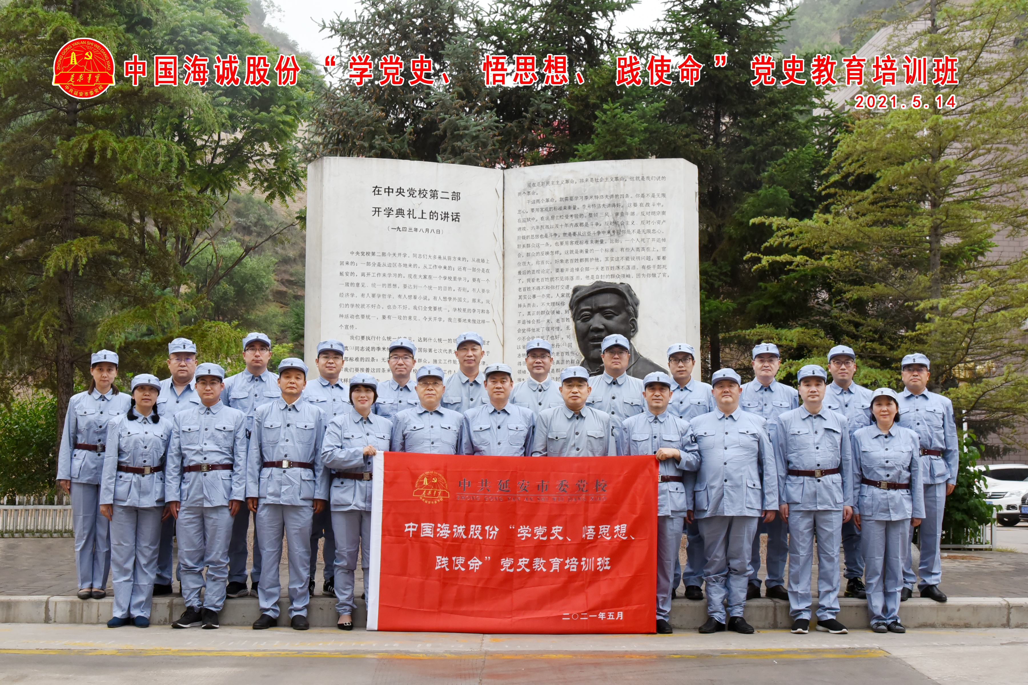 為進(jìn)一步堅(jiān)定理想信念,傳承紅色傳統(tǒng),接受革命洗禮,5月13日至15日,海誠(chéng)股份領(lǐng)導(dǎo)班子、所屬西安公司領(lǐng)導(dǎo)班子及黨員骨干20余人在革命圣地延安舉辦“學(xué)黨史、悟思想、踐使命”黨史教育專題培訓(xùn)班。
