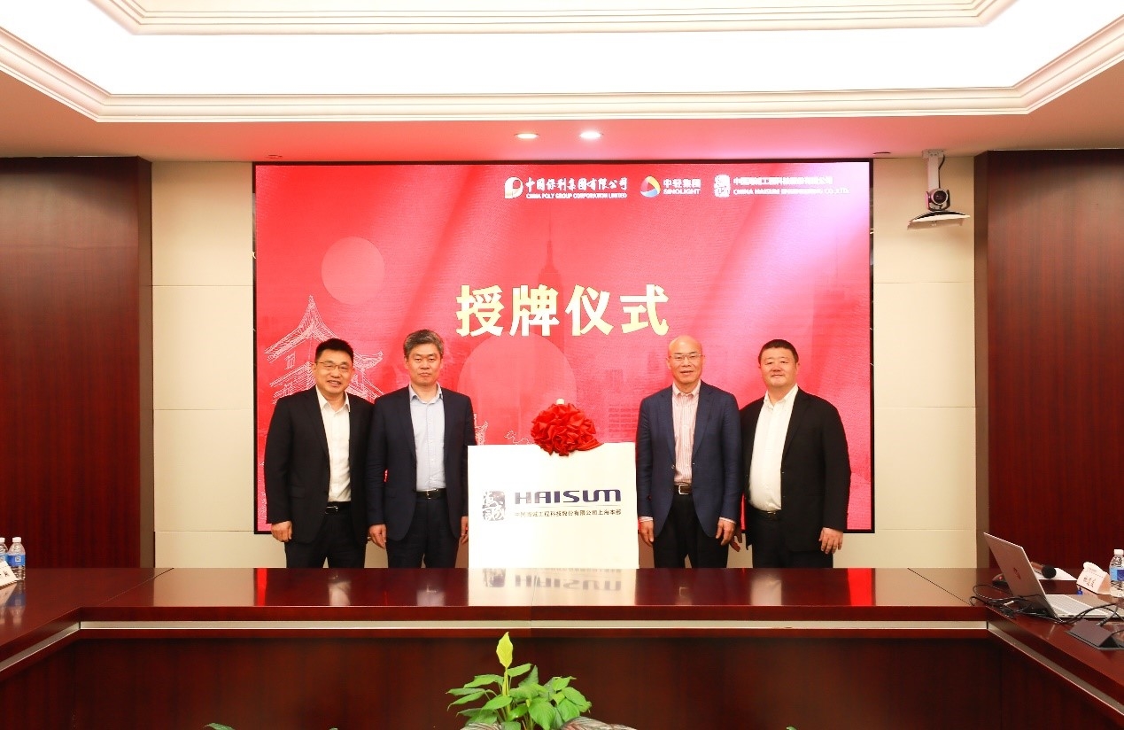 儀式上,在集團領導的見證下,趙國昂與周原分別代表海誠股份總部和本部簽署了《上海本部授權經(jīng)營協(xié)議書》;張萬順、趙國昂、陳榮榮、周原還一同為上海本部揭牌授牌。