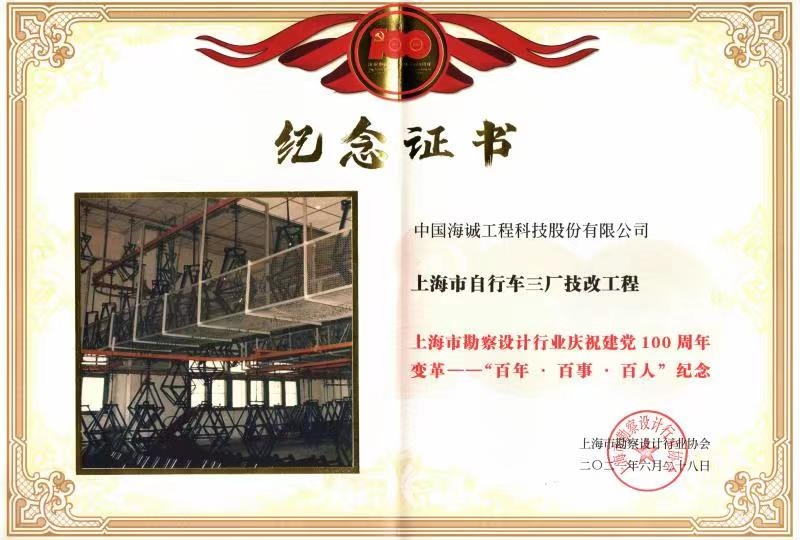 日前,公司在上海市勘察設(shè)計(jì)行業(yè)協(xié)會(huì)慶祝建黨100周年活動(dòng)中榮獲“百年·百事·百人活動(dòng)”紀(jì)念獎(jiǎng)。