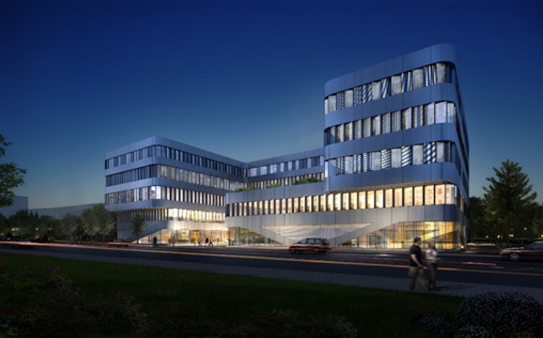 項目采用穿插、錯落等手法構(gòu)成兩個相互咬合的“L”形建筑體量,一方面減少了實驗人員的運輸和檢測流線,另一方面可滿足各個空間的采光通風(fēng),降低能耗。建筑以綠色建筑二星的標(biāo)準(zhǔn)進行建造,在節(jié)約能源和成本的同時也達到了國家要求的可持續(xù)性建筑的需要。