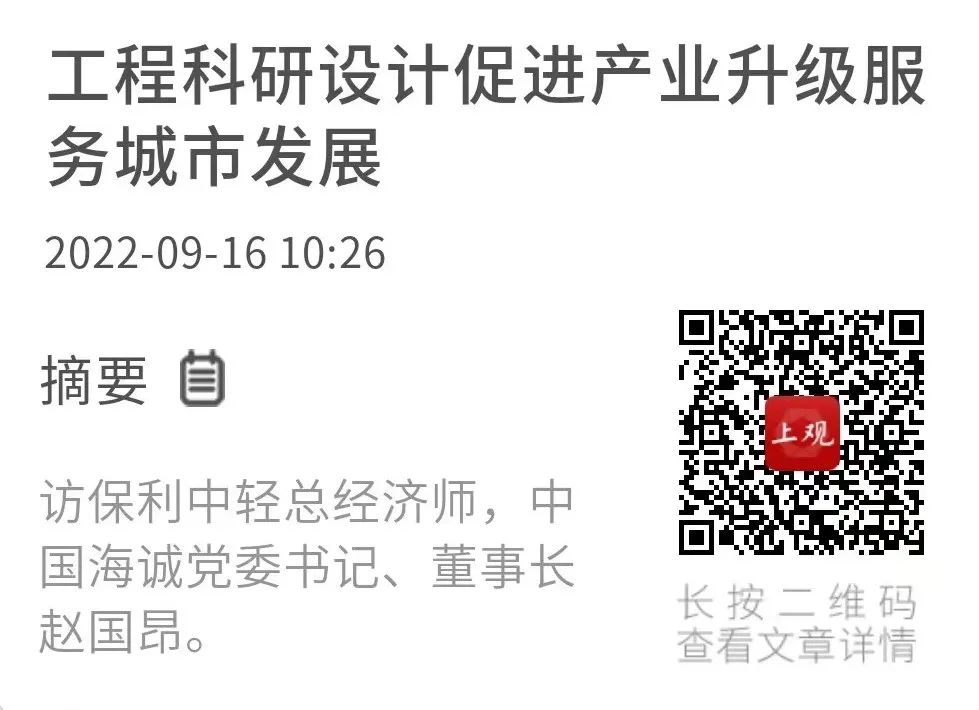 《工程科研設計促進產(chǎn)業(yè)升級服務城市發(fā)展——訪保利中輕總經(jīng)濟師,中國海誠黨委書記、董事長趙國昂》