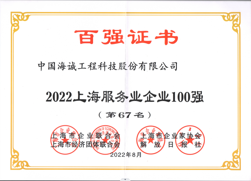 日前,由上海市企業(yè)聯(lián)合會、上海市企業(yè)家協(xié)會、上海市經(jīng)濟團體聯(lián)合會和解放日報社聯(lián)合主辦的2022年上海百強企業(yè)排行榜公布,公司以52.65億元的營業(yè)收入再次入選“上海服務(wù)業(yè)企業(yè)100強”,位列第67位,較上年上升1位。這也是公司連續(xù)第11次入選。