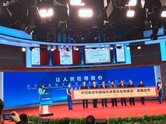 此次發(fā)布會正式啟動“食品凈化保食安進萬家計劃”,并簽訂“共同推動中國城市凈菜綜合體建設(shè)”以及“共同推動首個食品安全凈化行業(yè)標準行業(yè)推廣應(yīng)用”戰(zhàn)略合作協(xié)議。為進一步落實《果蔬凈化清洗機》行業(yè)標準全面落地,在家庭、群體性就餐、凈菜加工、農(nóng)產(chǎn)品加工等場所牢牢建起食品安全最后一道防線,真正讓老百姓放心吃好每一餐。來自國務(wù)院發(fā)展研究中心、人民網(wǎng)輿情監(jiān)測室、中食集團、中食凈化、國家食品藥品監(jiān)督管理總局、中國疾病預(yù)防控制中心營養(yǎng)與健康所、中關(guān)村豐臺科技園的領(lǐng)導(dǎo)代表共同啟動了“食品凈化保食安進萬家計劃”。