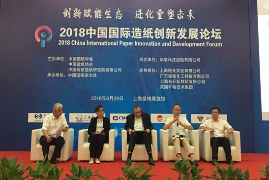 高端對(duì)話(huà)環(huán)節(jié),由中國(guó)輕工集團(tuán)公司副總經(jīng)理、中國(guó)造紙學(xué)會(huì)常務(wù)副理事長(zhǎng)曹振雷先生主持,貝勵(lì)集團(tuán)業(yè)務(wù)總裁Kaisa Vähänen,美國(guó)礦物技術(shù)集團(tuán)造紙PCC全球副總裁、亞洲區(qū)商務(wù)銷(xiāo)售Tony Blixt,山東仁豐特種材料股份有限公司董事長(zhǎng)宋佃鳳,中國(guó)紙業(yè)投資有限公司運(yùn)營(yíng)&營(yíng)銷(xiāo)中心總經(jīng)理呂強(qiáng),就造紙產(chǎn)業(yè)是否構(gòu)建了相對(duì)完整的生態(tài)系統(tǒng)、全球造紙產(chǎn)業(yè)發(fā)展不均衡問(wèn)題、中美經(jīng)貿(mào)摩擦對(duì)造紙國(guó)際貿(mào)易形勢(shì)影響、造紙PCC創(chuàng)新產(chǎn)品和解決方案、特種紙和包裝紙等紙種未來(lái)發(fā)展趨勢(shì)、面對(duì)造紙?jiān)鲜袌?chǎng)現(xiàn)狀如何掌握原料資源等問(wèn)題進(jìn)行了深入的探討和交流。