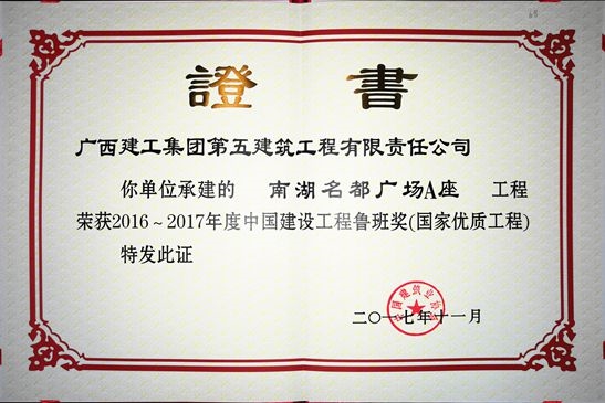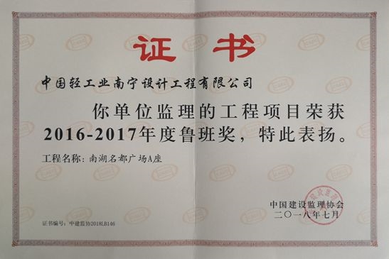 近日,海誠股份南寧公司監(jiān)理的工程項目—南湖名都廣場榮獲中國建設監(jiān)理協(xié)會授予“2016-2017年度魯班獎”。魯班獎是中國建筑行業(yè)工程質量最高榮譽獎,這是公司繼廣西壯族自治區(qū)人民檢察院業(yè)務技術偵查綜合樓(2005年獲魯班獎)、廣西南寧市國土交易綜合樓(2011年獲魯班獎)后,再次獲此殊榮,具有里程碑的意義。