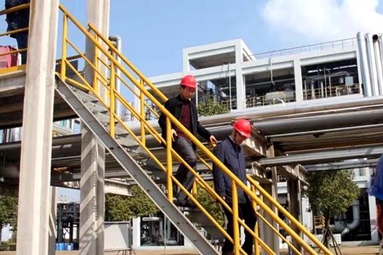 張萬順深入中控室、配電室、生產(chǎn)車間、環(huán)氧卸車平臺、污水處理站。每到一處,他都與員工一一親切握手,“同志們辛苦了”,“給大家拜年了”,一聲聲問候,一句句祝福,溫暖了堅守一線的每一位員工。