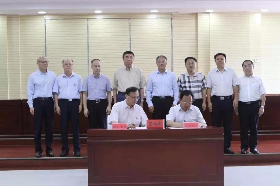 集團(tuán)公司副總經(jīng)理劉軍才代表保利集團(tuán)與喀喇沁旗簽署“助力脫貧攻堅和鄉(xiāng)村振興框架協(xié)議”,集團(tuán)公司總會計師傅俊元代表保利集團(tuán)向喀喇沁旗捐贈“改善農(nóng)村人居環(huán)境資金”,集團(tuán)公司總經(jīng)理張振高向“保利星火班”第三期學(xué)員發(fā)放錄取通知書。