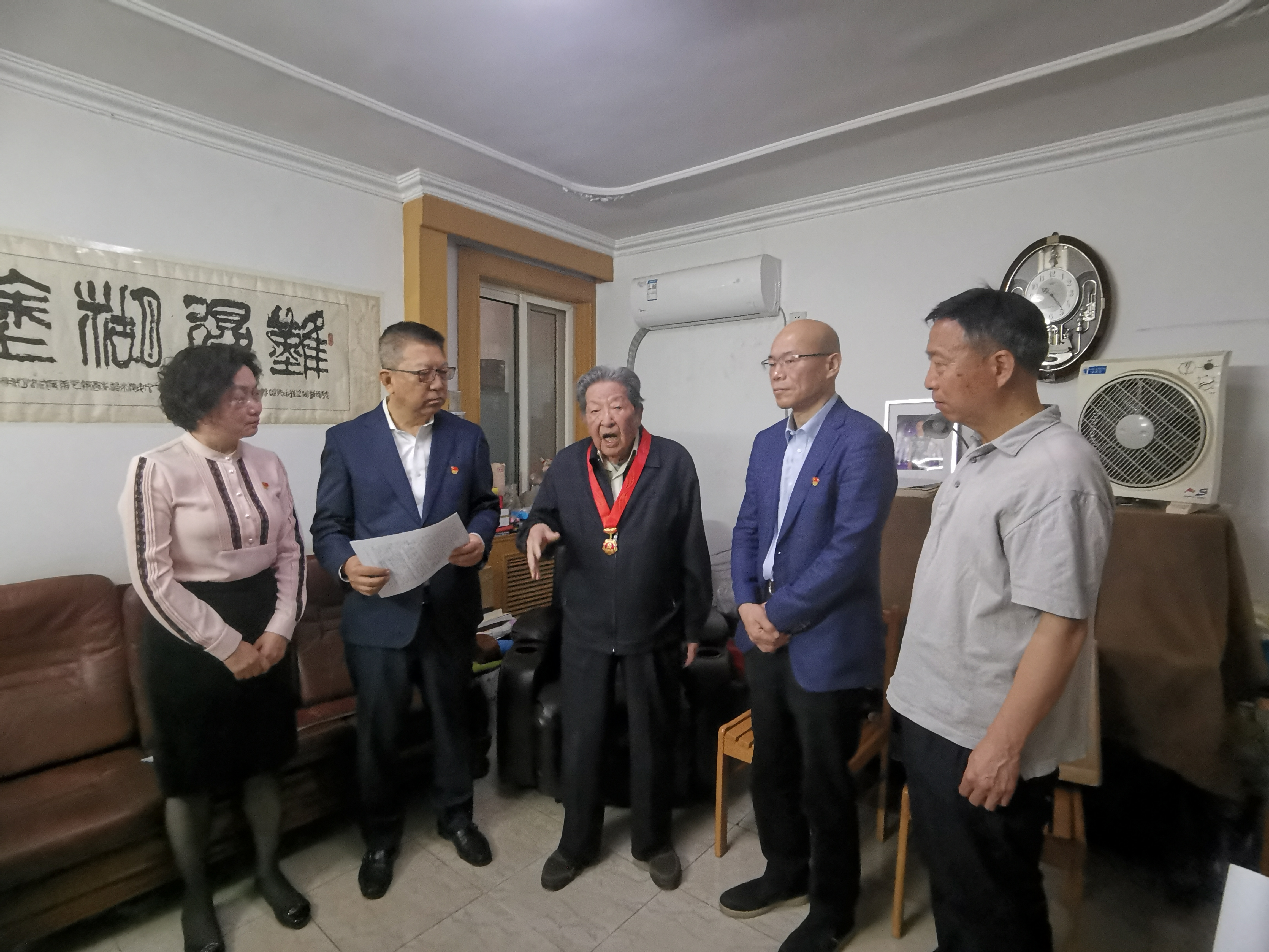 6月18日上午,劉軍才、張萬順、郭建全、曹文素一行前往73年黨齡的趙金生老先生家中慰問。1948年,趙老在東北民主聯(lián)軍六隊(duì)警衛(wèi)營行軍舟戰(zhàn)斗中立大功一次;1949年,在四野43軍司令部四連南下行軍中立功一次;建國后,遠(yuǎn)赴朝鮮參加抗美援朝戰(zhàn)爭。劉軍才一行仔細(xì)觀摩趙老獲得的多枚紀(jì)念章,對他為黨的解放事業(yè)和新中國建設(shè)所做的貢獻(xiàn)表示感謝。