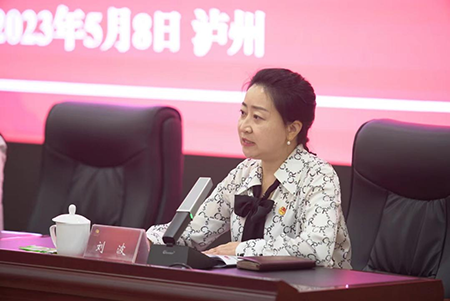 李春艷致歡迎辭,向?qū)W員簡要介紹瀘州整體情況和分院建設(shè)情況,并為培訓(xùn)班授旗。