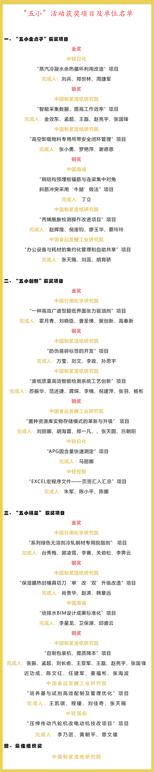 惟創(chuàng)新者進,惟創(chuàng)新者強,惟創(chuàng)新者勝。為深入學習貫徹習近平總書記關(guān)于工會工作的重要論述精神,激發(fā)廣大職工的聰明才智和創(chuàng)新潛能,營造創(chuàng)新創(chuàng)效的濃厚氛圍,助力保利中輕加快建設(shè)世界一流科技創(chuàng)新產(chǎn)業(yè)集團,保利中輕堅持開展“五小”(小發(fā)明、小創(chuàng)造、小革新、小設(shè)計、小建議)活動,為廣大職工提供創(chuàng)造創(chuàng)新、施展才華的重要平臺。