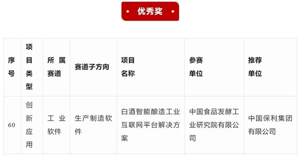 近日,由國(guó)務(wù)院國(guó)資委主辦的第四屆中央企業(yè)熠星創(chuàng)新創(chuàng)意大賽獲獎(jiǎng)結(jié)果公布。中國(guó)食品發(fā)酵工業(yè)研究院(簡(jiǎn)稱“中國(guó)食品院”)研發(fā)的創(chuàng)新應(yīng)用類項(xiàng)目“白酒智能釀造工業(yè)互聯(lián)網(wǎng)平臺(tái)解決方案”,憑借優(yōu)異的技術(shù)創(chuàng)新能力,榮獲此次大賽優(yōu)秀獎(jiǎng)。這不僅是對(duì)中國(guó)食品院卓越創(chuàng)新能力的肯定,更是中國(guó)食品院在數(shù)字化發(fā)展進(jìn)程中的又一重要里程碑。