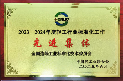 中國制漿造紙研究院承擔(dān)秘書處單位的全國造紙工業(yè)標(biāo)準(zhǔn)化技術(shù)委員會獲得“2023—2024年度輕工行業(yè)標(biāo)準(zhǔn)化工作先進(jìn)集體”榮譽(yù)稱號。