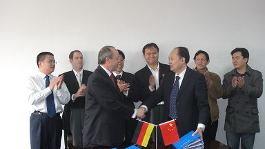 經(jīng)過數(shù)輪緊張談判,2009年11月18日,集團(tuán)公司所屬長沙長泰公司與德國徠斯機(jī)器人公司就工業(yè)機(jī)器人領(lǐng)域進(jìn)行業(yè)務(wù)合作簽定了合資合同。集團(tuán)公司副總經(jīng)理、長泰公司董事長馬思一先生與德國徠斯機(jī)器人公司代表、亞太區(qū)總裁Manfred Emont先生代表雙方分別在合資合同書上簽字。