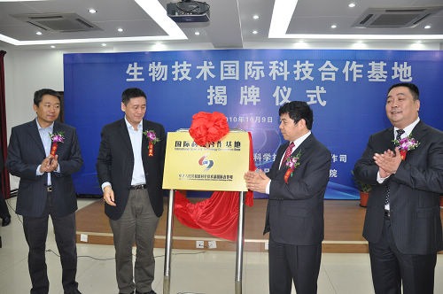 10月9日,科技部“生物技術(shù)國際科技合作基地” 揭牌儀式在集團食品發(fā)酵院隆重舉行??萍疾繃H合作司靳曉明司長、綜合與計劃處張健處長、集團陳鄂生董事長、食品發(fā)酵院蔡木易院長等出席了此次揭牌儀式。靳曉明司長和陳鄂生董事長共同為生物技術(shù)國際科技合作基地揭牌。