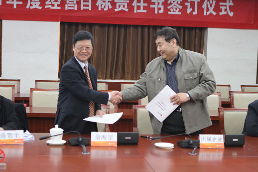 俞海星總經(jīng)理與集團(tuán)公司副總經(jīng)理兼中國(guó)造紙裝備公司馬思一簽訂責(zé)任書