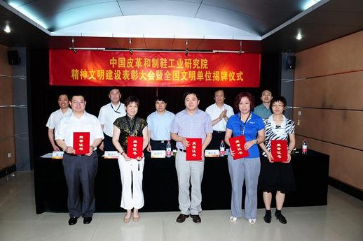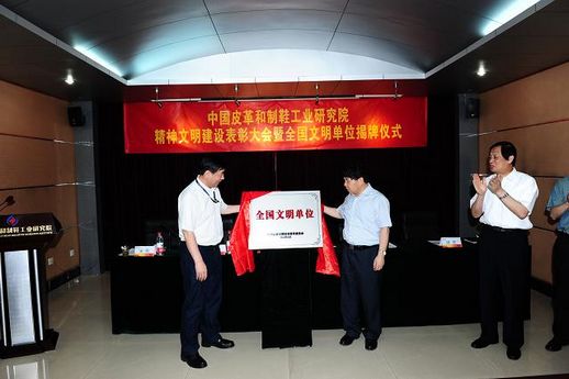 2012年6月8日,中國(guó)皮革和制鞋工業(yè)研究院召開(kāi)精神文明建設(shè)先進(jìn)集體和先進(jìn)個(gè)人表彰大會(huì)暨全國(guó)文明單位揭牌儀式,集團(tuán)公司董事長(zhǎng)、黨委書記陳鄂生,黨委副書記、紀(jì)委書記梁江東,皮革制鞋院院長(zhǎng)、黨委書記楊承杰,副院長(zhǎng)田美,黨委副書記、副院長(zhǎng)宋昕以及集團(tuán)公司人力資源部負(fù)責(zé)同志及全院職工出席了會(huì)議。會(huì)議由皮革制鞋院宋昕主持。