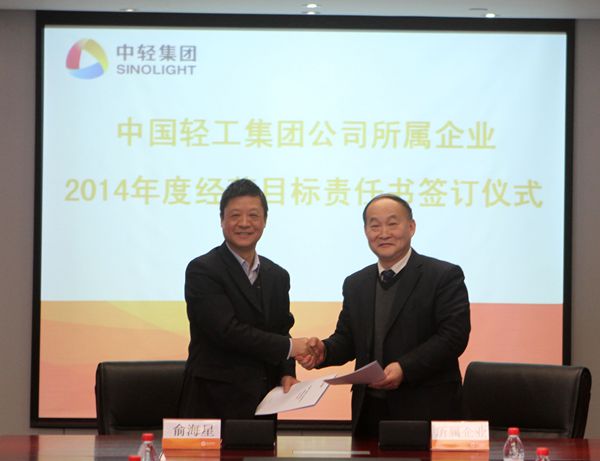 集團公司總經(jīng)理俞海星與中輕對外公司副總經(jīng)理馬江(代)簽訂經(jīng)營目標責任書