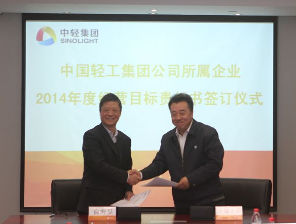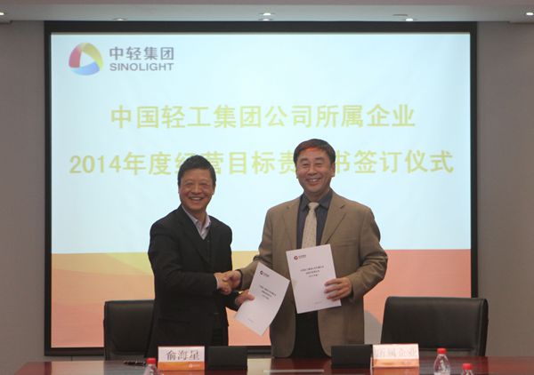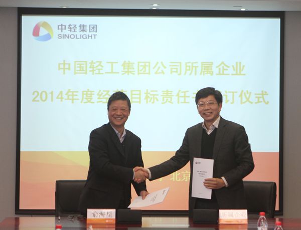 集團公司總經(jīng)理俞海星與中輕物產(chǎn)公司總經(jīng)理錢小林簽訂經(jīng)營目標責任書