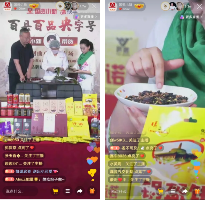 直播現(xiàn)場包粽子、品雜糧粥