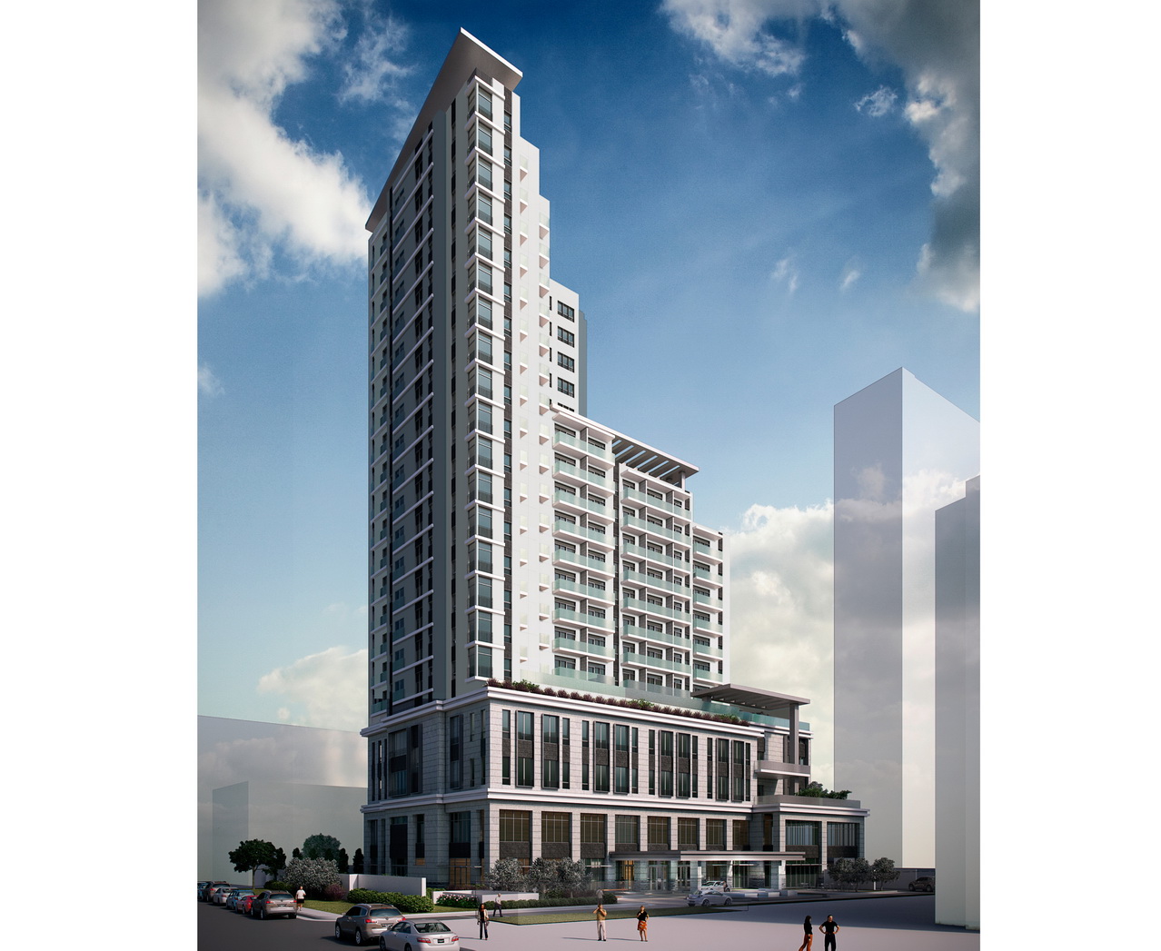 上海紅寧護理院位于上海市長寧區(qū),西臨凱旋路。地塊內有一幢高層建筑及門衛(wèi),高層建筑地下二層,地上二十一層,總建筑面積26611.8㎡。地下二層為車庫和公共設備用房,地下一層為員工食堂,中央廚房和公共設備用房,一至四層的裙房為公共空間,包括康復中心、醫(yī)技室、多功能廳等,滿足大樓內人員的護理需求,五層及以上為護理房間。設計床位數(shù)99床