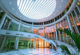 基地面積200000㎡,建筑面積14450㎡,綠化面積140000㎡,樓層平均高度4.8米,一類建筑,耐火等級為一級。環(huán)境設計十分優(yōu)雅,有大面積內湖、小品、小橋流水、曲徑通幽。本工程建筑結構平面復雜,融空管機房大廳、辦公交流培訓、國外專家指導中心、管制專業(yè)人員高檔生活服務中心等。結構有鋼筋砼結構、鋼結構、鋼網(wǎng)架結構、加勁砼結構、鋼管結構等。本工程裝飾標準高,外墻采用了日本進口氟碳烤漆純鋁板、美國純白玻璃、進口石材等裝飾技法。屋面局部采用進口鋁鈦鎂屋面板。內裝飾采用了蜂窩鋁板、進口大理石、不銹鋼、進口PVC地板、大面積防靜電活動地板等。本工程配套設施有:變配電中心、鍋爐水泵房、液化氣供應站、監(jiān)控中心、污水處理場等。本工程已獲得上海市“優(yōu)質結構獎”、“優(yōu)質安裝獎”、“金剛獎”,“白玉蘭獎”也已由評委驗收。